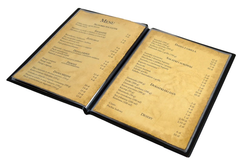 KARTY Z JADŁOSPISEM NIE SĄ PRZEDMIOTEM SPRZEDAŻY, SŁUŻĄ JEDYNIE DO PREZENTACJI PRODUKTU.