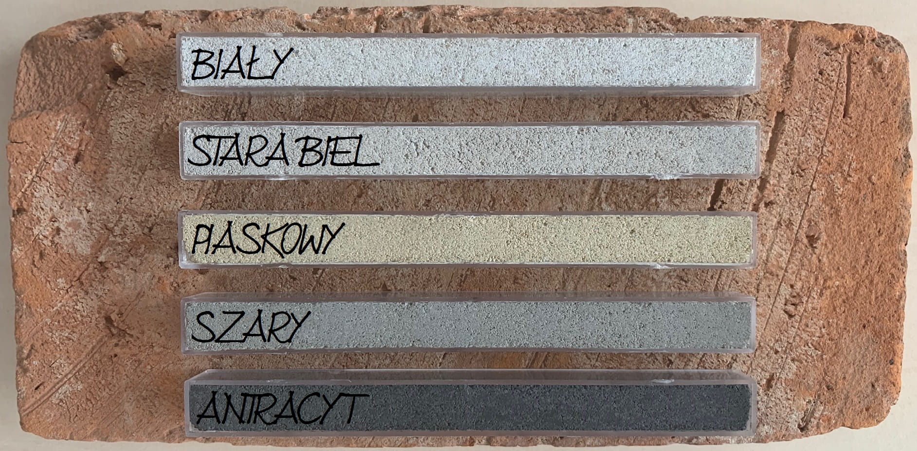 Наиболее часто покупаемый и используемый цвет-серый и старый белый потому что он идеально имитирует старый известковый раствор.