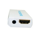 Adapter umożliwia podłączenie konsoli Wii do wejścia HDMI telewizora wysokiej rozdzielczości. Konsola do gier Nintendo Wii została wprowadzona na rynek tuż przed pojawieniem się pełnego HDMI z obsługą urządzeń. Teraz możesz przynieść swoją ulubioną konsolę do gier z powrotem do 21 wieku do obrazu w jakości HD. Adapter przesyła do telewizora kablem HDMI obraz i dźwięk. Wystarczy włożyć do złącza AV konsoli i podłączyć kablem HDMI. Adapter ma wbudowane opcjonalne, dodatkowe wyjście dźwięku (można dodatkowo podłączyć np. głośniki komputerowe lub słuchawki). W zależności od ustawień konsoli Wii przesyła obraz 576i lub 480p, oraz dźwięk cyfrowy stereo. Konsola Wii nie posiada złącza HDMI. Dzięki temu konwerterowi można wygodnie podłączyć swoją konsolę do gier do telewizora za pomocą przewodu HDMI. Takie rozwiązanie zapewnia przyjemną grę w jakości Full HD.