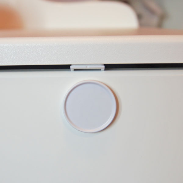 8. aby otworzyć zatrzask przystaw okrągły klucz po zewnętrznej stronie frontu szuflady na przeciwko zatrzasku zamontowanego wewnątrz szuflady