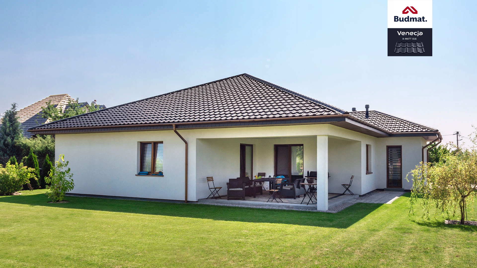 Wyjątkowa blachodachówka modułowa Venecja firmy BUDMAT® to bardzo wysokie przetłoczenie (35mm), które nie tylko usztywnia nasze pokrycie dachowe, ale przywodzi na myśl dachy ceramiczne. Ponadto moduł blachodachówki Venecja zapewnia mniejsze ilościowo zużycie łat, wkrętów i krótszą tym samym pracę wykonawcy na dachu. Blachodachówkę Venecja możemy mocować również za pomocą zwykłych wkrętów farmerskich.