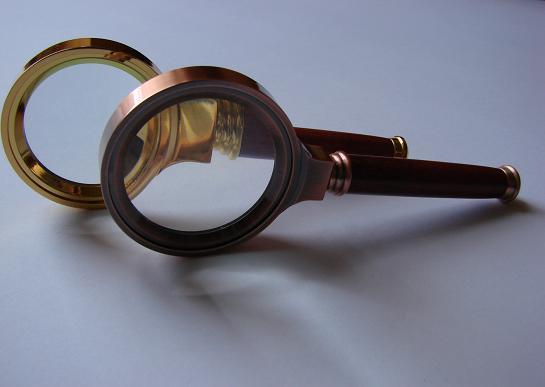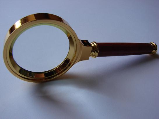 -lupa w kolorze złotym lub miedzianym
