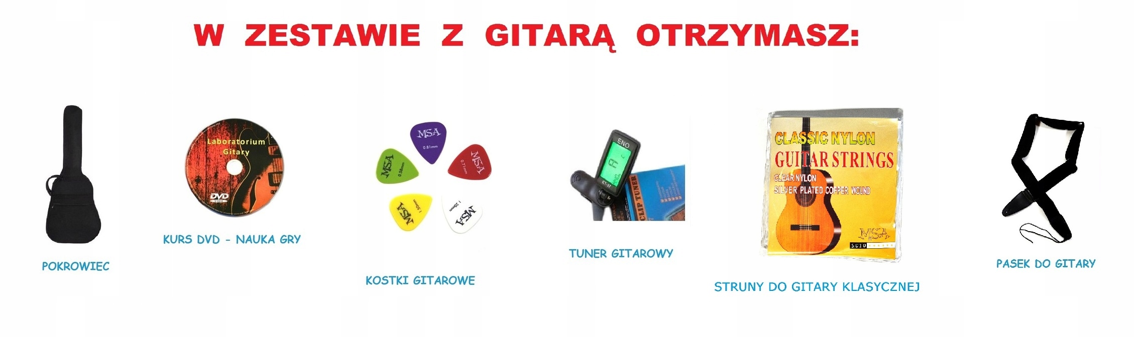 Gitara MSA jest świetnie wykonana, trwała z korpusem z drewna lipowego. Do produkcji używane jest wysokogatunkowe drewno selekcjonowane akustycznie. Pudło wykonane jest z wysokiej jakości drewna, pokryte lakierem, z pięknie zdobionym otworem rezonansowym. Dzięki bardzo dobrej jakości materiałom oraz strunom brzmi soczyście i bardzo dobrze stroi. Gryf jest smukły, dzięki czemu gra na tym instrumencie jest bardzo przyjemna. Gitary polecane przez instruktorów gry, miękkie nylonowe struny zawieszone nisko nad gryfem ułatwiają naukę.