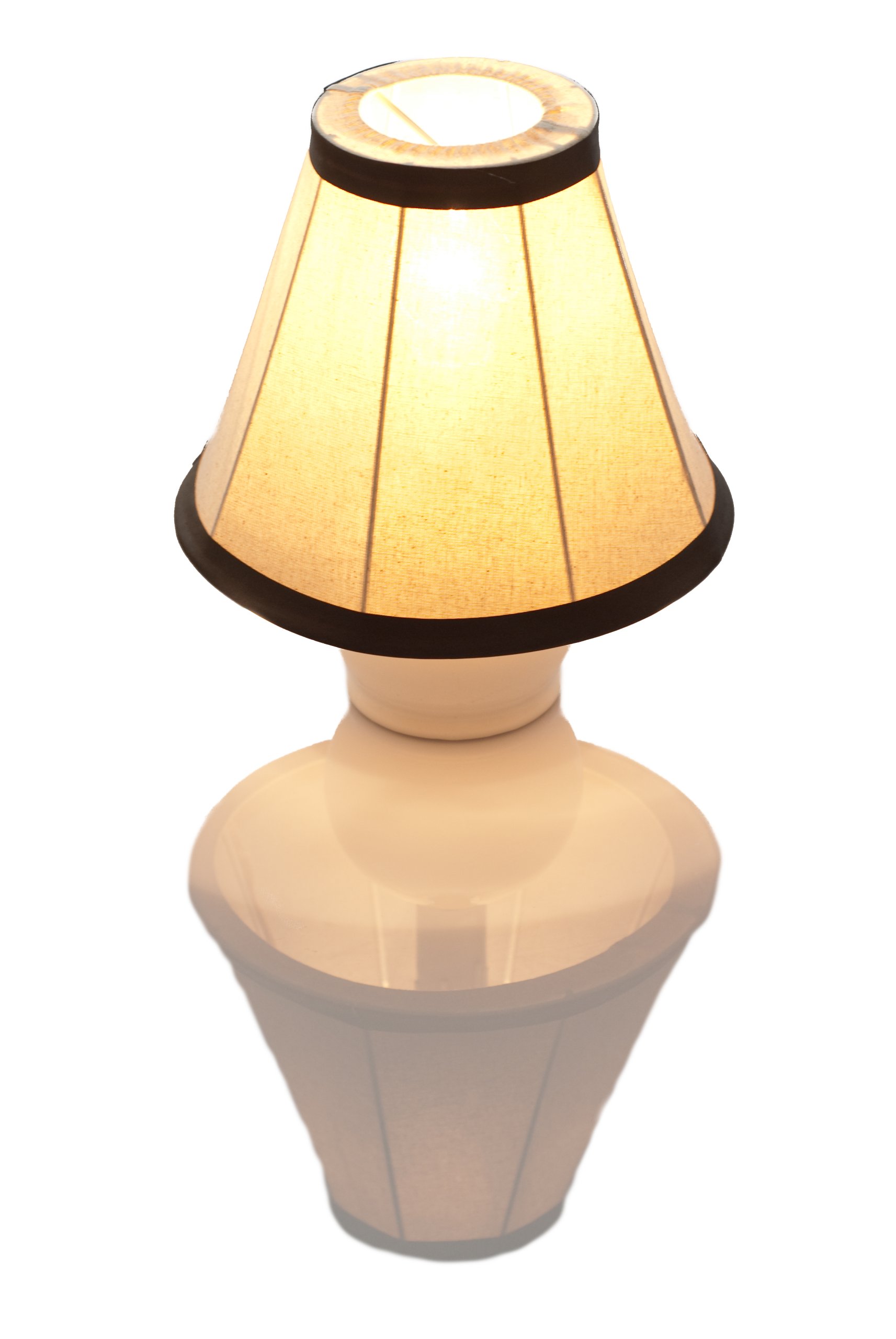 Abażur z kolekcji tkaniny naturalne wykonany z ekologicznej tkaniny lnianej lub bawełnianej ozdobiony tasiemką. Jest to klosz do małych lamp, kinkietów.
