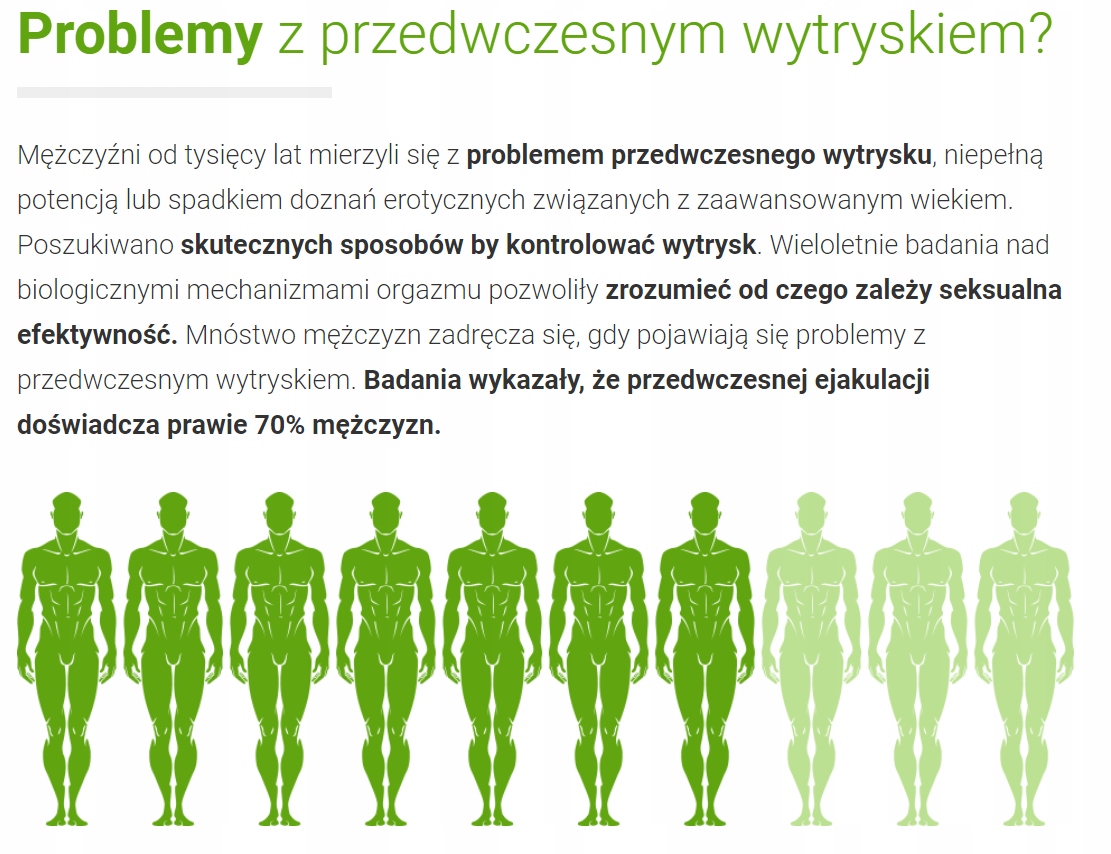 Orgasm Control został stworzony, by wspomagać i regulować pracę organizmu mężczyzn w każdym wieku. Ciesz się seksem i osiągaj satysfakcję bez lęku i obaw, że nie podołasz oczekiwaniom partnerki lub przyjemność skończy się zbyt wcześnie. Przygotuj się na rewolucję w swoim życiu erotycznym. Naturalnie, bez stosowania silnych leków czy uciążliwych, czasochłonnych ćwiczeń.