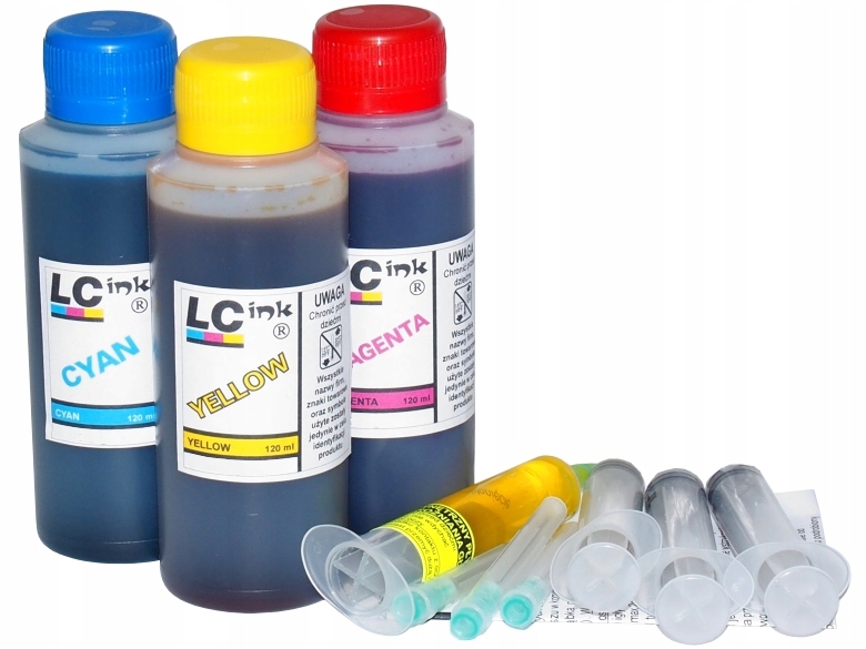 name czerwony (magenta), niebieski (cyan), trójkolorowy, żółty (yellow), zestaw