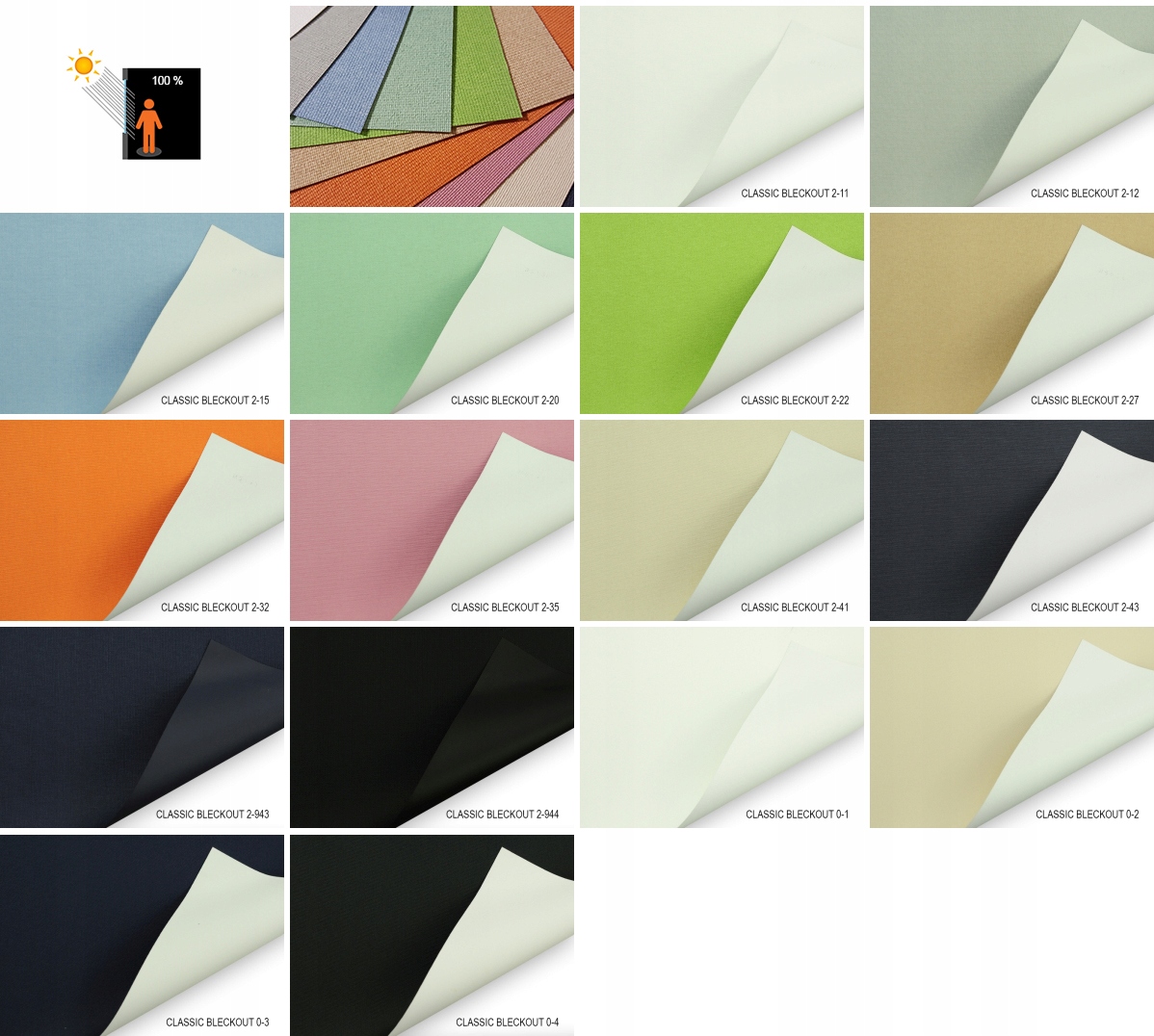 CLASSIC BLECKOUT I tkanina zaciemniająca z gładką fakturą. Podgumowanie w kolorze zbliżonym do koloru tkaniny