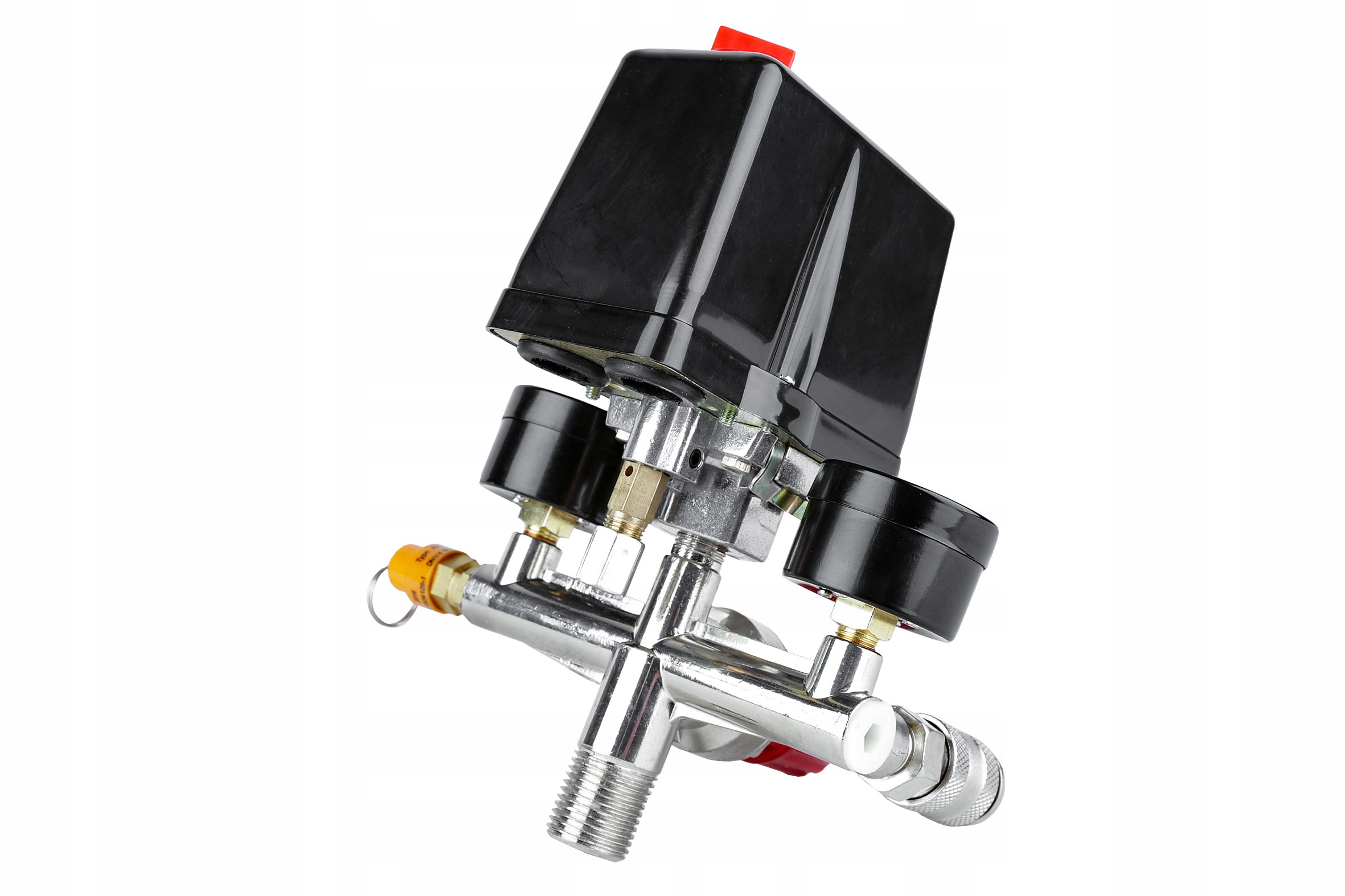 ✔️ Zawór zwrotny i bezpieczeństwa: zawór zwrotny utrzymuje ciśnienie w zbiorniku, a konstrukcja presostatu pozwala na pracę pod ciśnieniem do 12BAR, co umożliwia obsługę kompresorów o wysokim ciśnieniu roboczym po zmianie zaworu bezpieczeństwa.