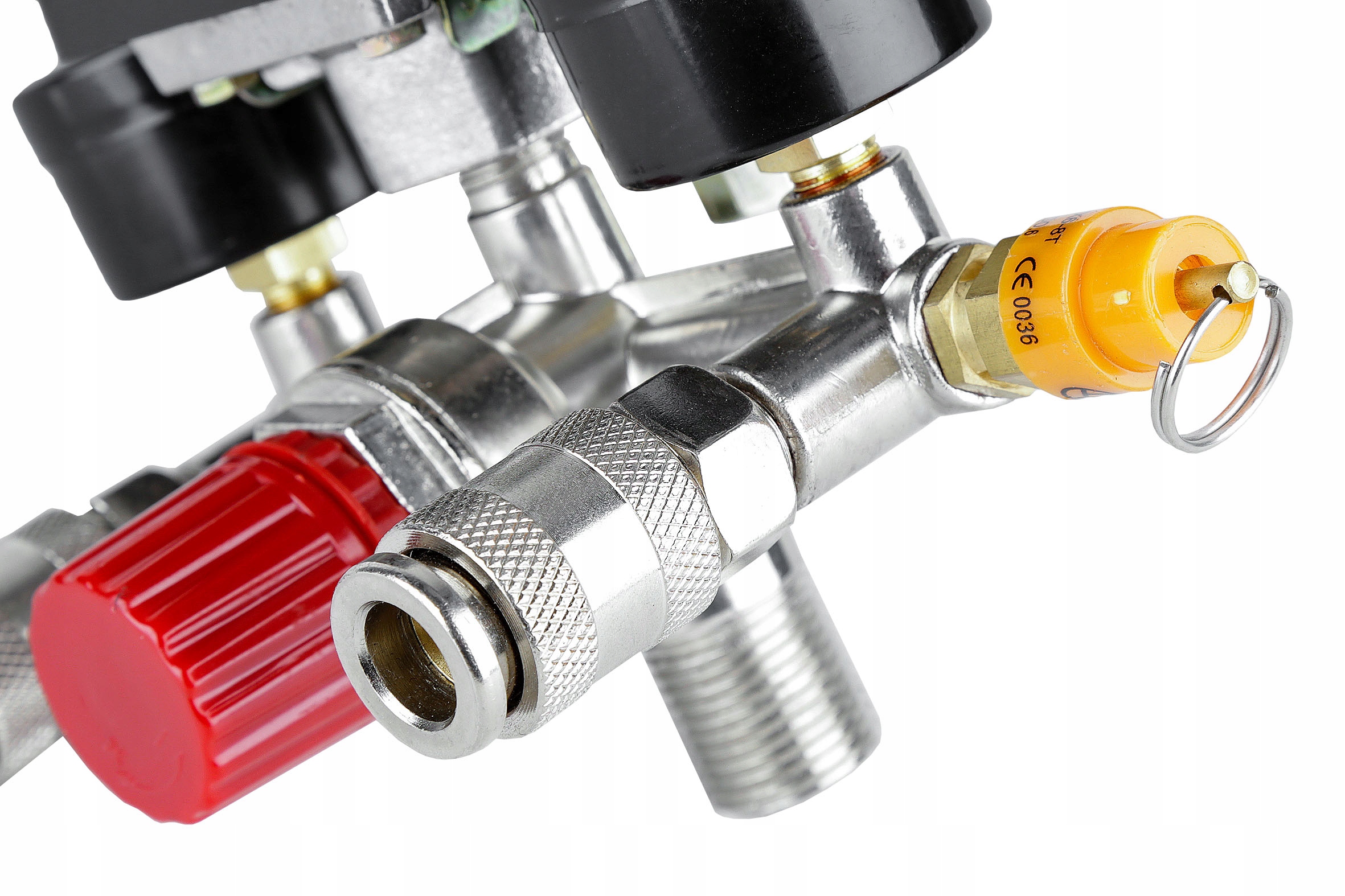 ✔️ Reduktor i kolektor: wbudowany reduktor pozwala na precyzyjne obniżanie ciśnienia na jednym z szybkozłączek, co jest niezwykle przydatne w różnych zastosowaniach. Kolektor umożliwia efektywne rozprowadzanie powietrza.