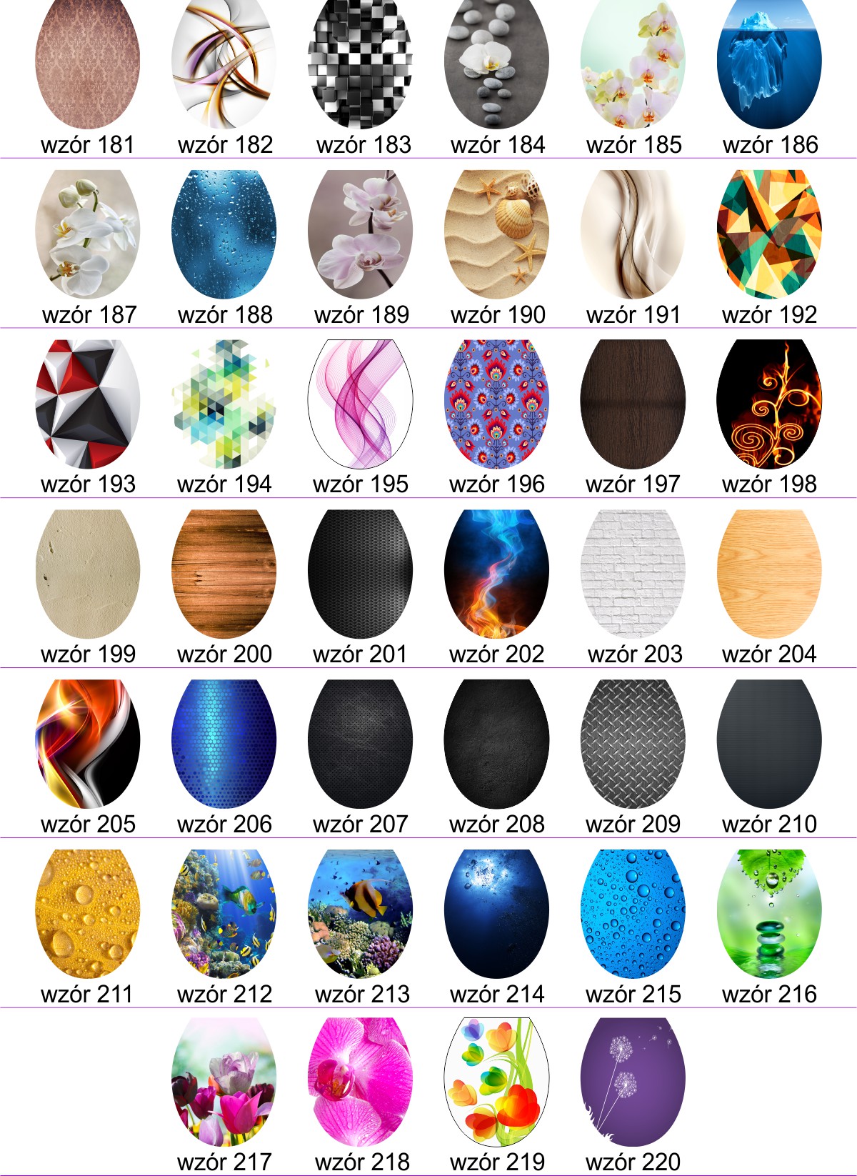 Wybierz jeden z oferowanych przez Nas wzorów, prześlij Nam jego numer. Uwaga w przypadku braku podanego wzoru zostanie wysłany wzór z miniaturki aukcji (wzór nr 168).