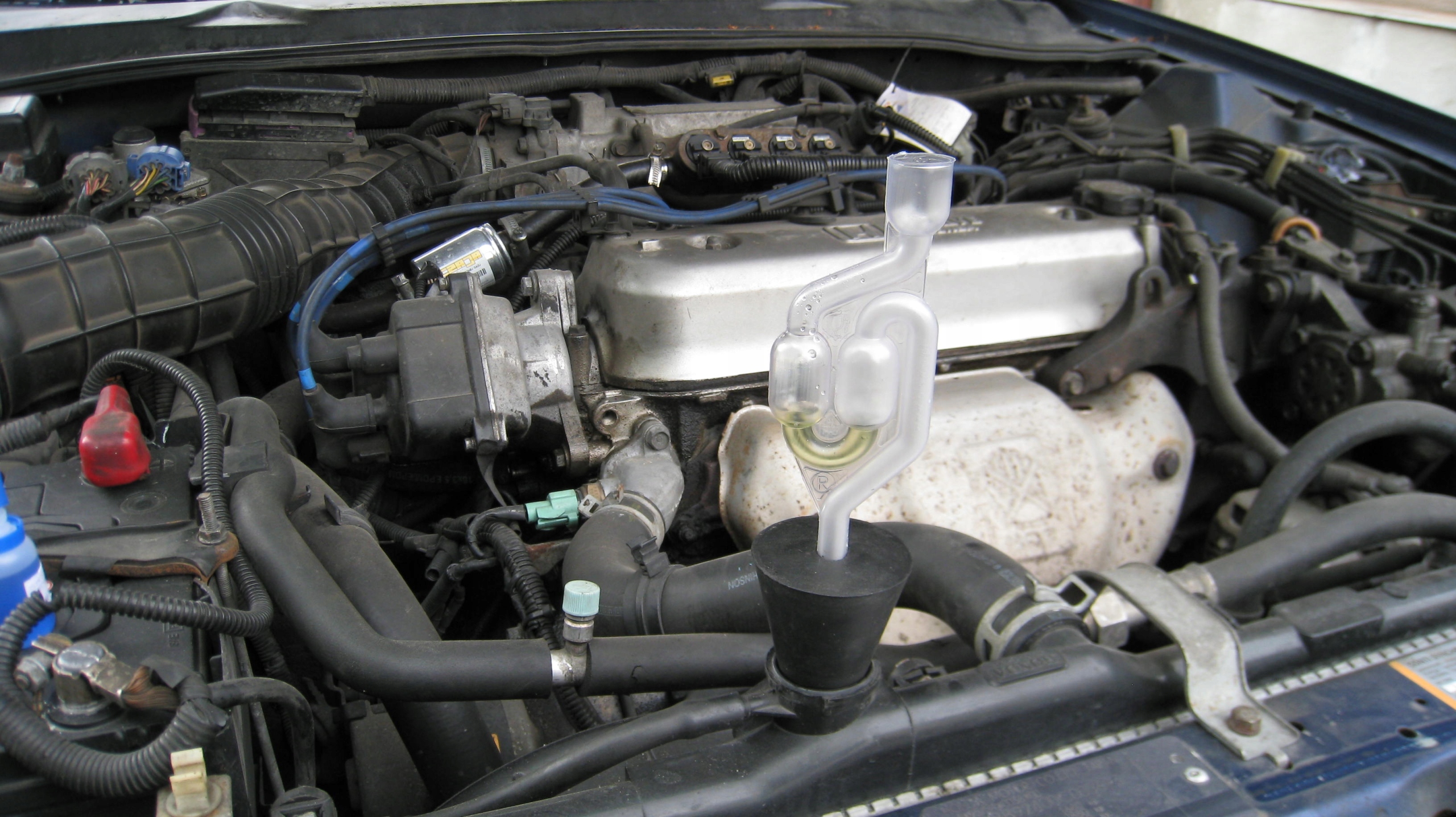 Во время теста жидкость стала желтой, что означает поврежденную прокладку или треснувшую головку. Выпускные газы попали в систему охлаждения, вступили в реакцию с жидкостью и изменили ее цвет.