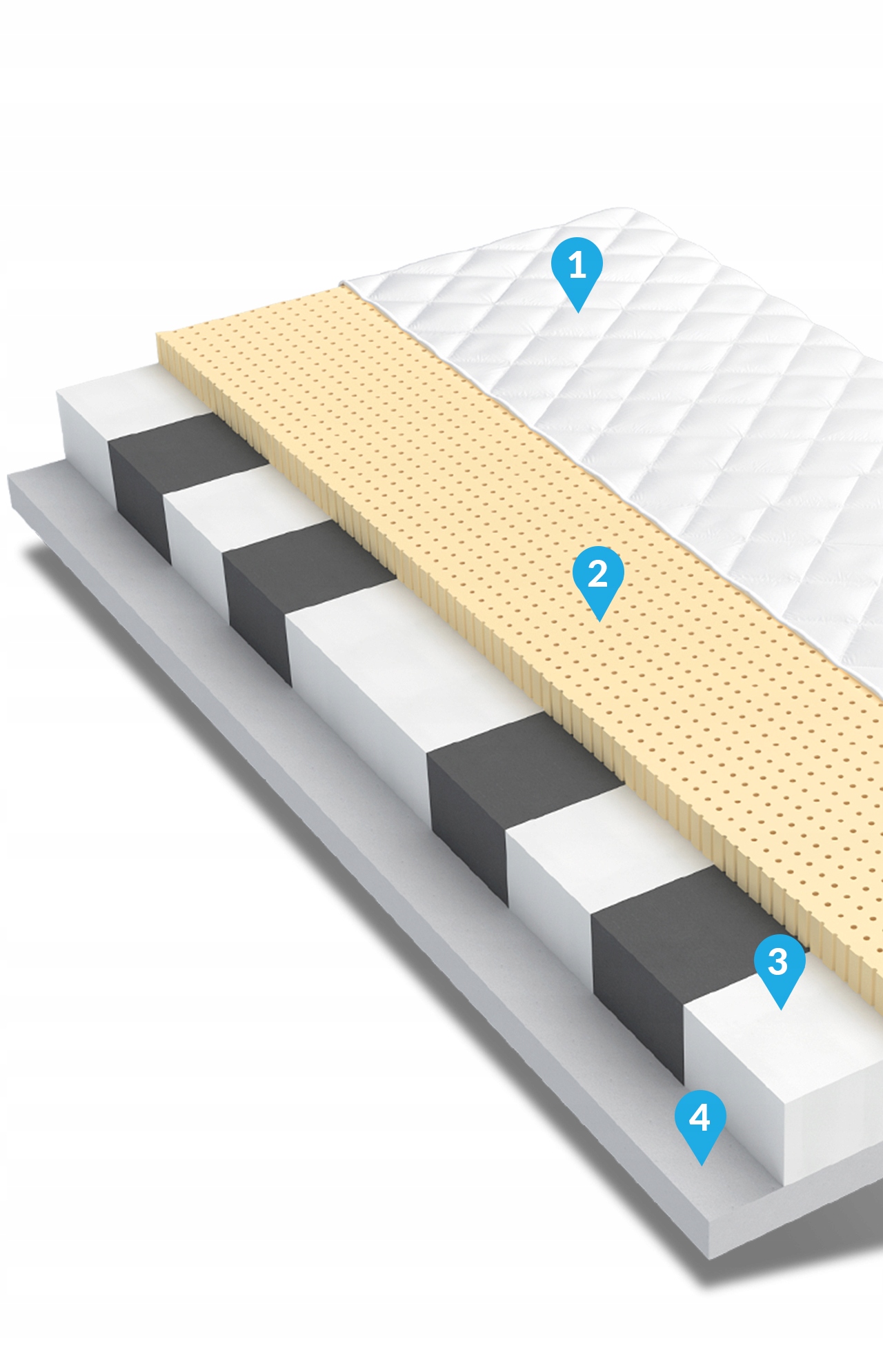 Его пористая структура обеспечивает отличную циркуляцию воздуха, что делает невозможным развитие грибка и плесени. Он имеет неоднородную клеточную структуру, благодаря чему получает лучшее параметры поддержки тела, комфорта и упругости. Характеризуется повышенной гибкость, которая значительно повышает комфорт использования и влияет на его удлинение срок службы.