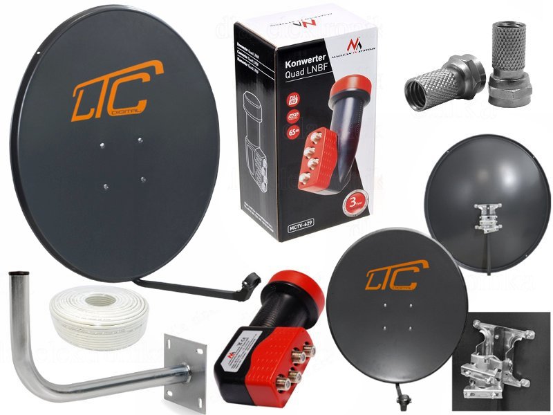 FULL ZESTAW HD: Czasza HD 90cm, Maszt 28cm, Konwerter Quad HD, Kabel antenowy 50m, Wtyki F!