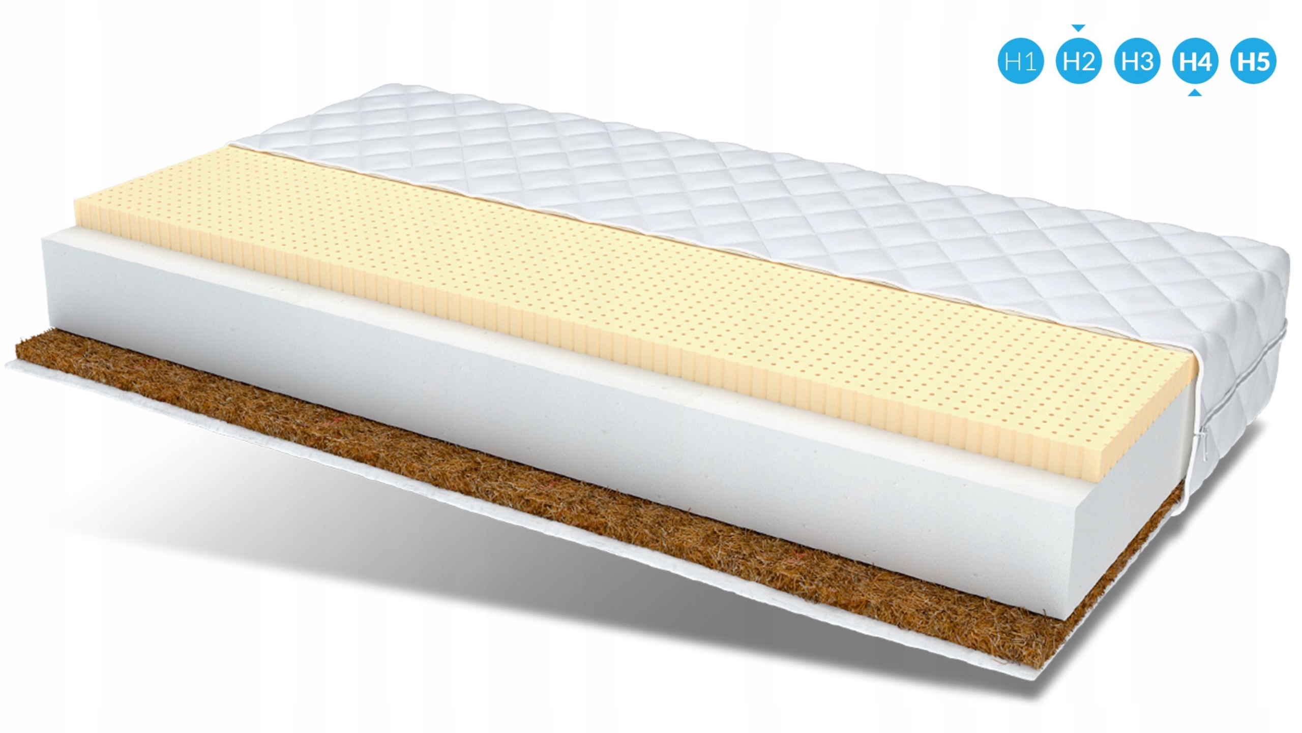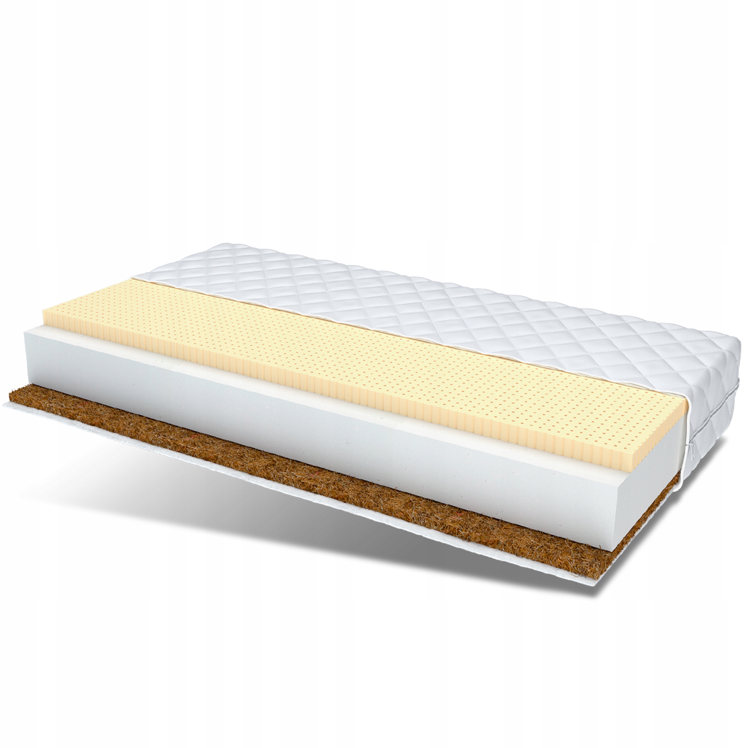 Натуральные волокна кокоса легкие и воздушные, а также очень прочный и гибкие, устойчивы к влаге и деформации. Они улучшают циркуляцию воздуха внутри матраса, благодаря чему предотвращают чрезмерное запотевание. Кокос имеет также антиаллергические, предотвращает развитие грибков и клещей.