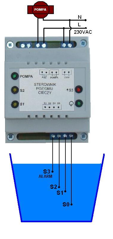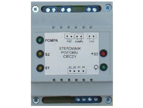Sterownik umożliwia sterowanie pompą wody ( lub innym urządzeniem wykonawczym ) na podstawie poziomu wody w zbiorniku. Pomiar dokonywany jest przez przewody (elektrody) zanurzone w wodzie.