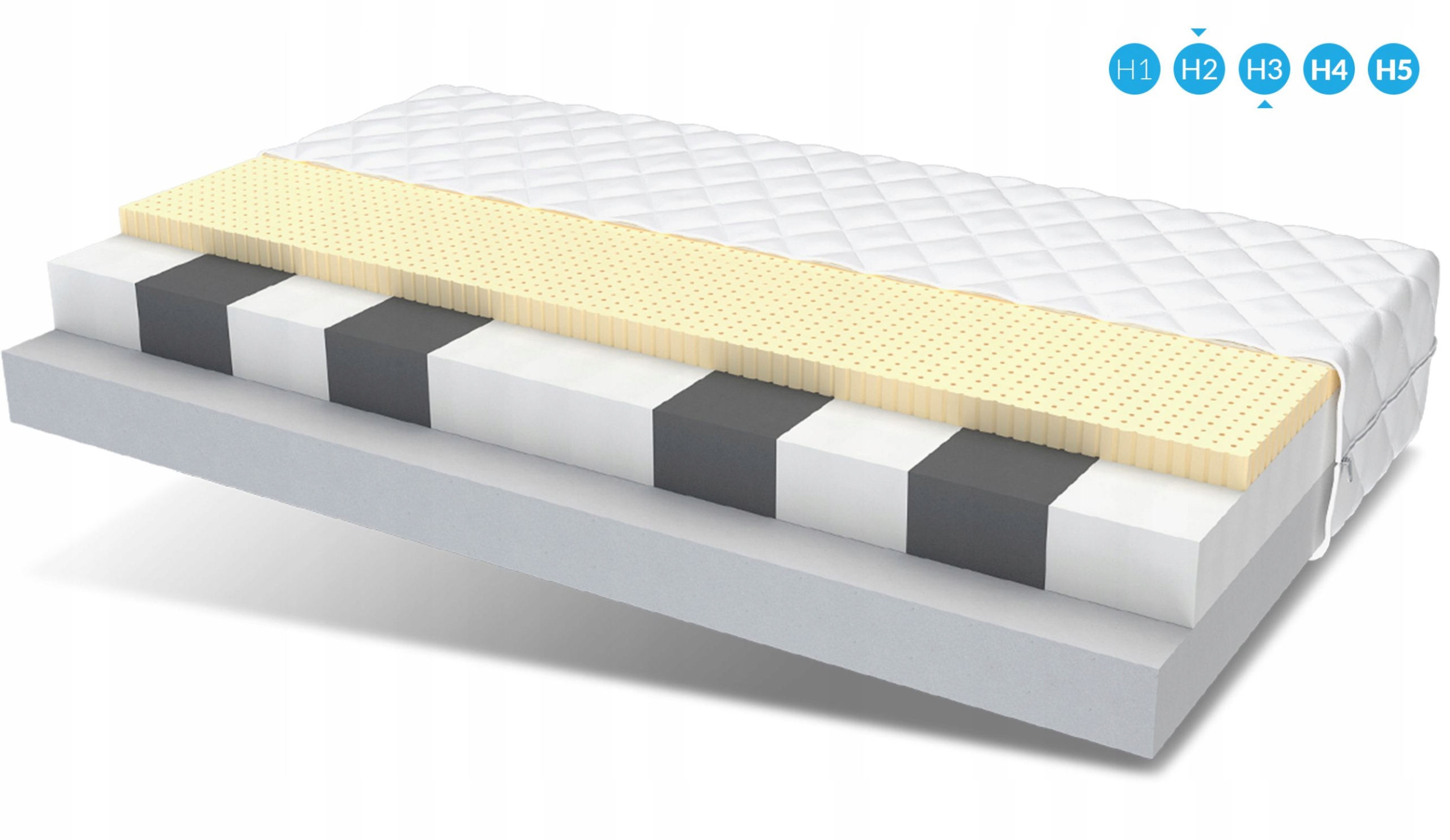 Rozmiar▸ 80x180 cm ❘ Wysokość▸ 14 cm ❘ Twardość strony górnej▸ H2 - miękki ❘ Twardość strony dolnej▸ H3 - średnio twardy