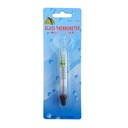 Precyzyjny termometr służy do pomiaru temperatury w akwarium. Zielone pole wskazuje optymalną temperaturę dla większości ryb natomiast żółte o niższych lub wyższych potrzebach termicznych.