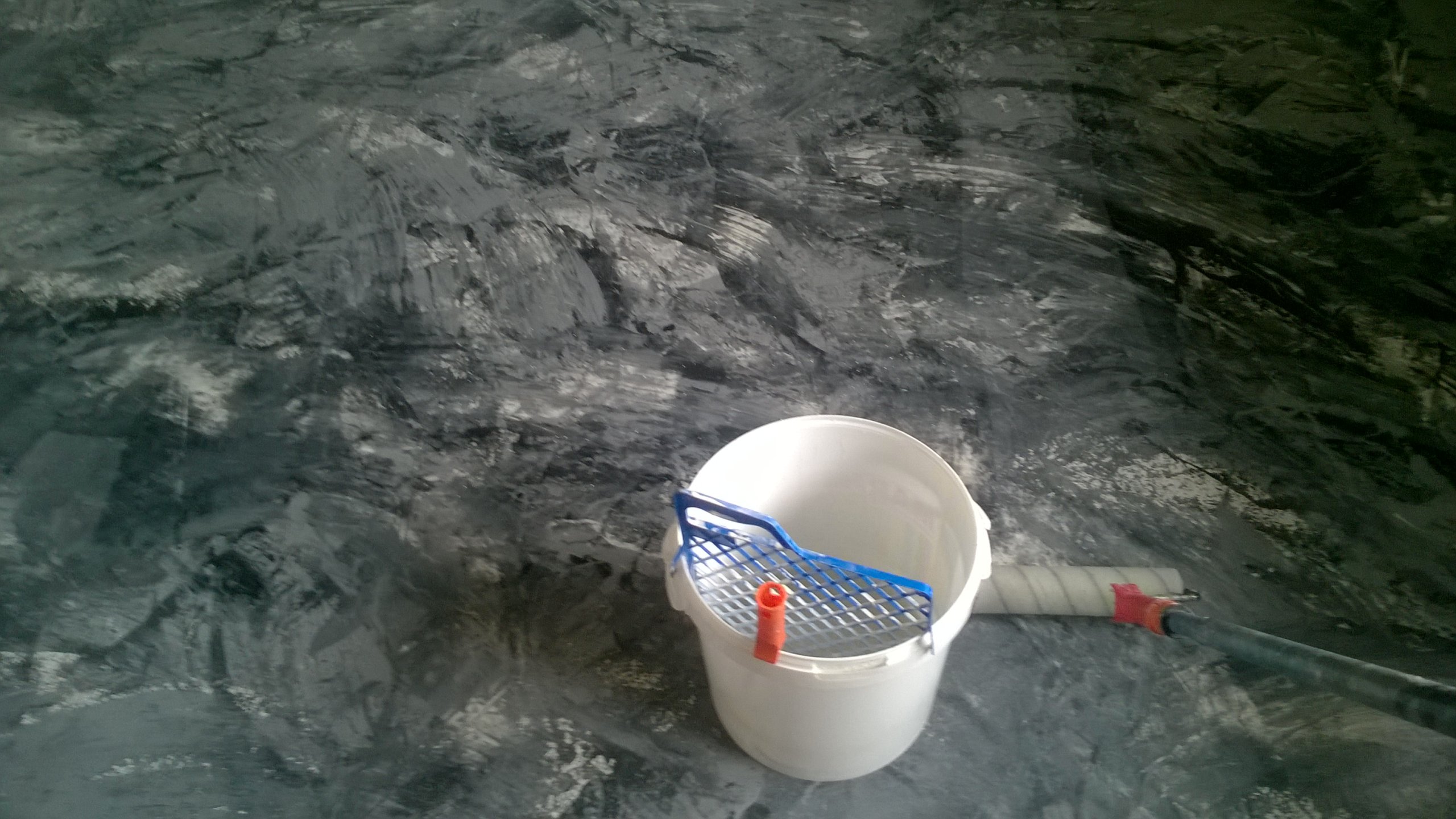 Смола также может быть нанесена в двух цветах с помощью шпаклевки, создавая так называемые мази мраморные, а затем нанесите бесцветное покрытие с брызгами против скольжения из бесцветной смолы poliuretanowej Micronfloor Polyurethane UV transparente Fast odpornej na UV.