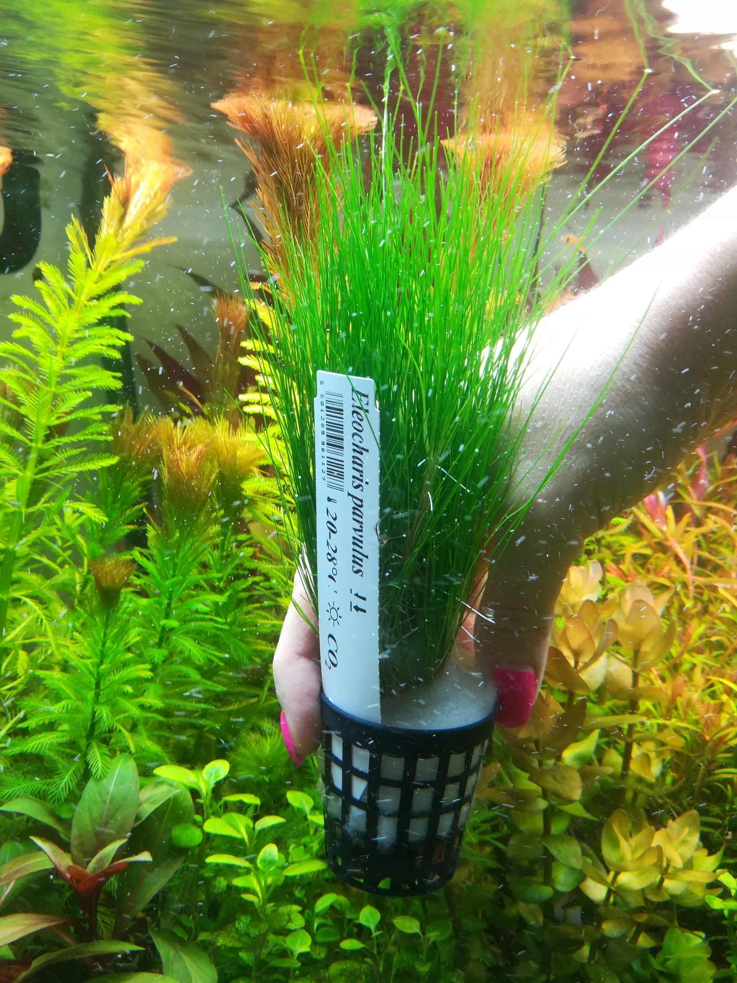 Eleocharis parvula - najniższa trawka akwariowa. Dorasta do maksymalnie 5 cm, można ja przycinać. Roślina wymaga dobrego światła i dwutlenku węgla. Tworzy zwarty trawnik na pierwszym planie.Najlepiej sadzić ją na żyznym podłożu w małych kępkach co ok. 2 cm od siebie.