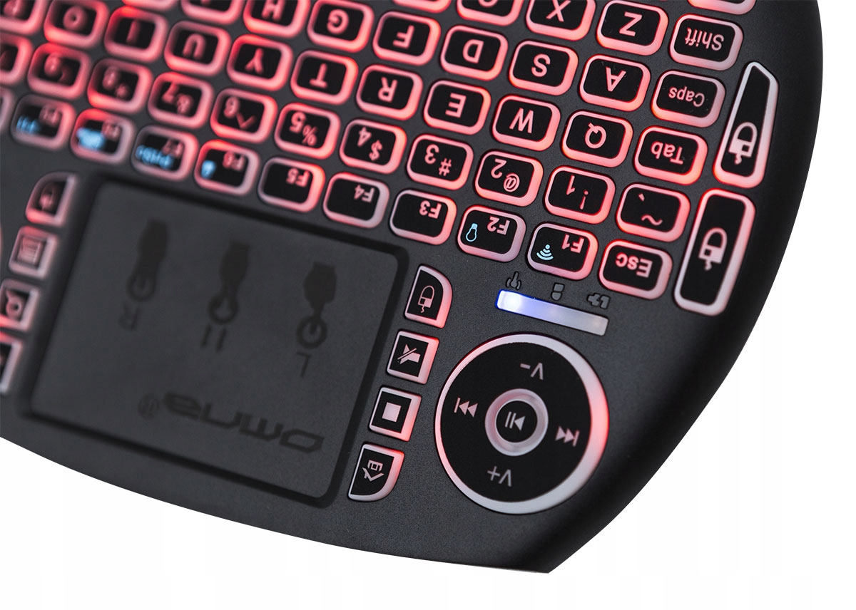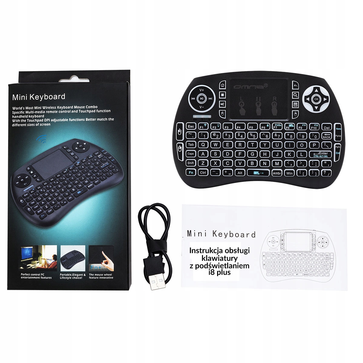 Wielofunkcyjna, podświetlana, nowoczesna mini klawiatura QWERT z funkcją myszki (wbudowany panel dotykowy touchpad obsługujący gesty)