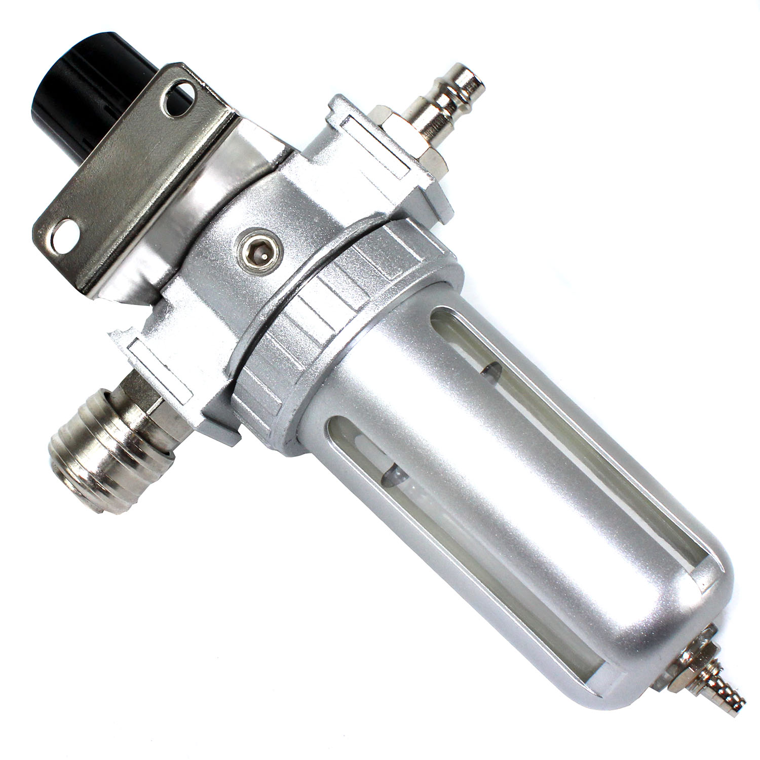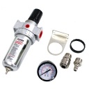 Filtr z reduktorem służy do osuszania i regulacji ciśnienia powietrza. Jest niezbędnym elementem każdej instalacji pneumatycznej. Stosując ten filtr zapobiegasz między innymi; rdzewieniu narzędzi, zaciekom podczas malowania pistoletami lakierniczymi, uszkodzeniom węży itp.