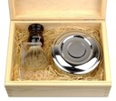 Zestaw zapakowany jest drewniane pudełko o wymiarach 22 cm x 16 cm