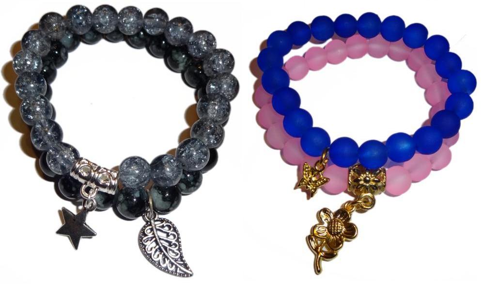 Koraliki pakowane są po 22szt w jednym kolorze, jest to odpowiednia ilość sztuk do wykonania najmodniejszych w tym sezonie bransoletek. Poniżej przykładowe bransoletki jakie możesz wykonać z zestawu: