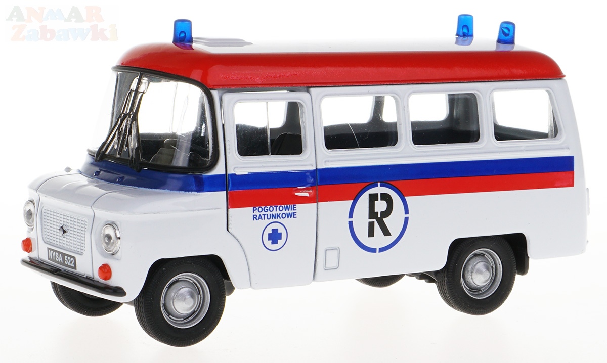 Модель выполнена из металла и пластик. Имеет открывающиеся двери и резиновые шины.