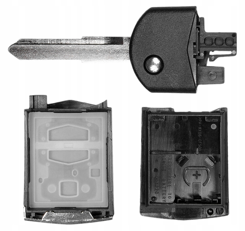 В корпус необходимо вставить электронику, аккумулятор и транспондер иммобилайзера от старого ключ. Металлический наконечник может быть вырезан в точке изготовления ключей или перенесен из старого корпуса. Батарейная пластина в комплекте.