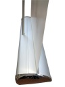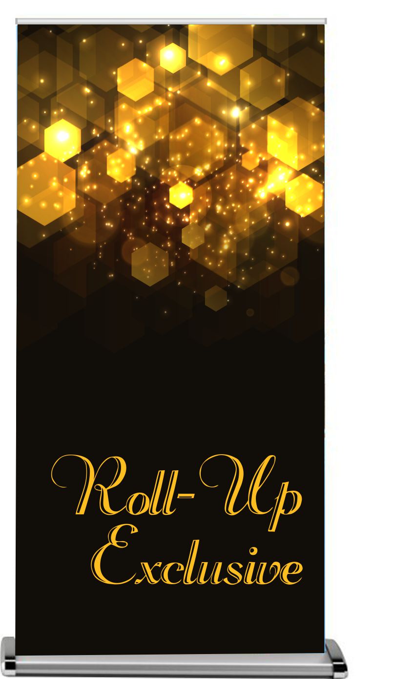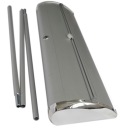 Roll-up składa się z aluminiowej kasety i stelaża z zamocowaną grafiką. Wersja Exclusive posiada ciężka i elegancką kasetę bez nóżek, grubą tyczkę, oraz chromowane boki.