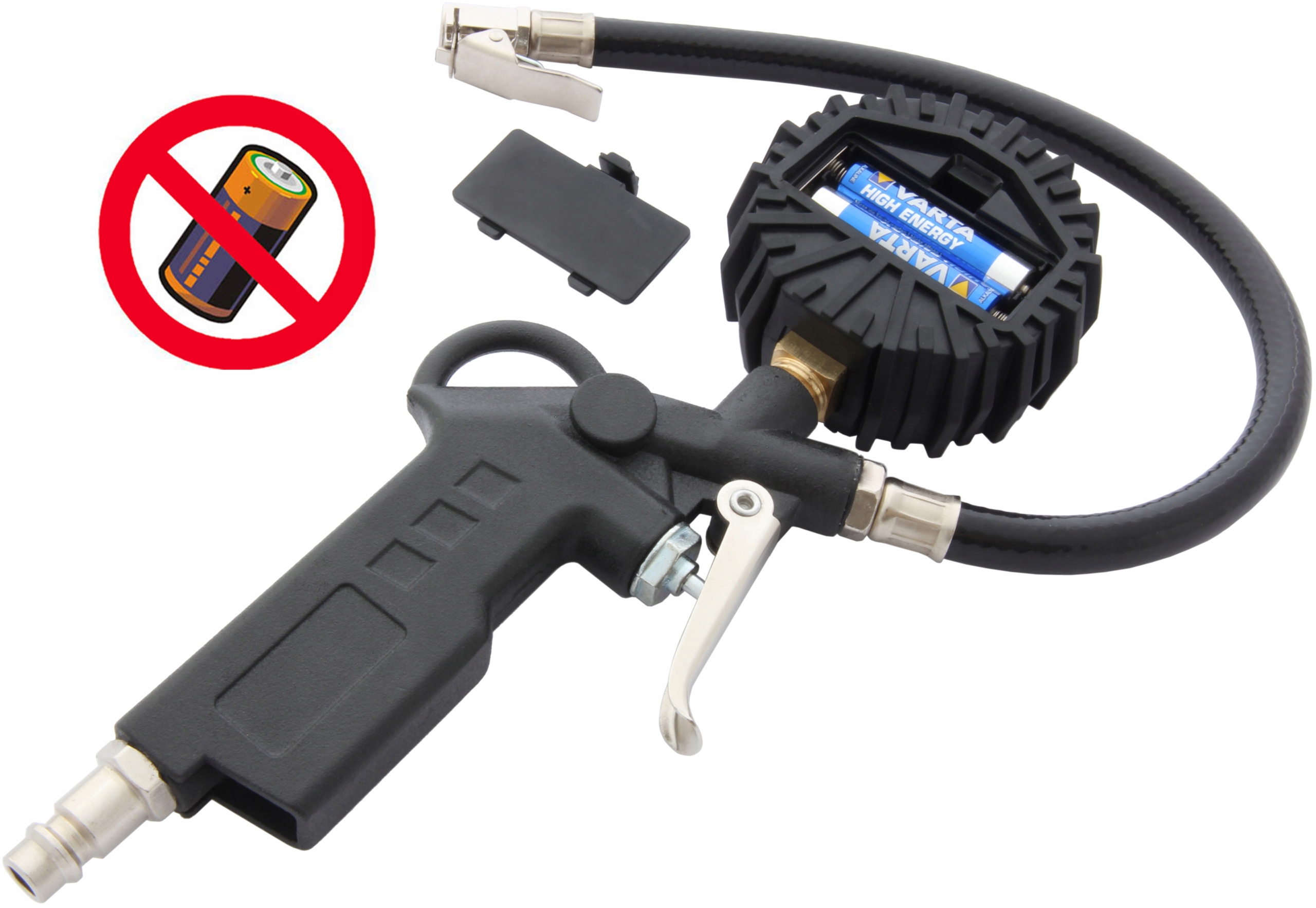 Solidna stalowa konstrukcja z elementami mosiężnymi, ochronna gumowa obudowa i obrotowa (360°) główka z końcówką pod kątem 45 stopni.
