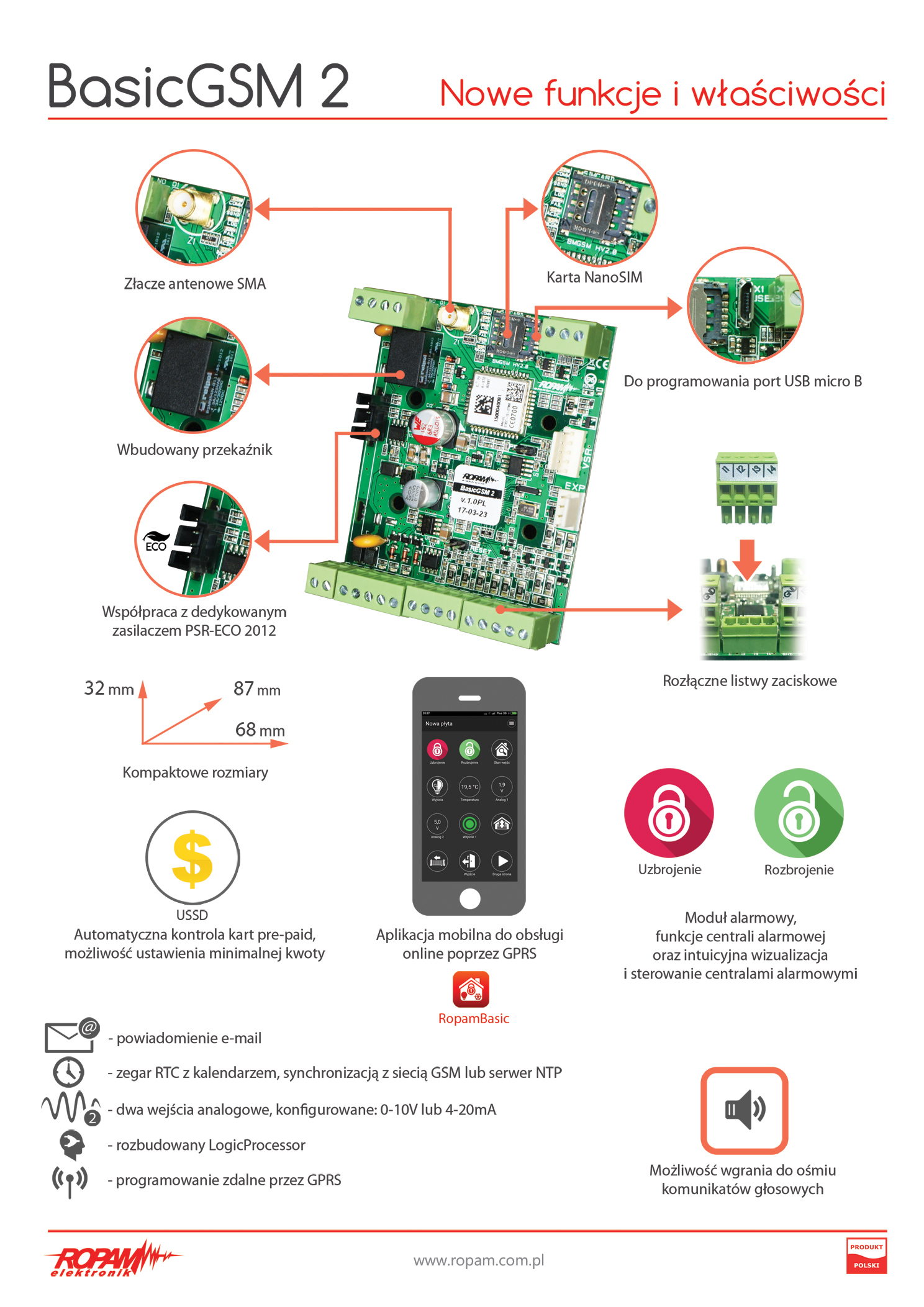 -profesjonalny moduł powiadomienia i zdalnego sterowania BasicGSM 2 + antena, wyższej klasy niż GPRS-T4, ma 8 wejść, 4 wyjścia, powiadamia 8 osób, wykrywa zagłuszanie oraz oferuje podgląd stanu centrali i sterowanie z aplikacji mobilnych