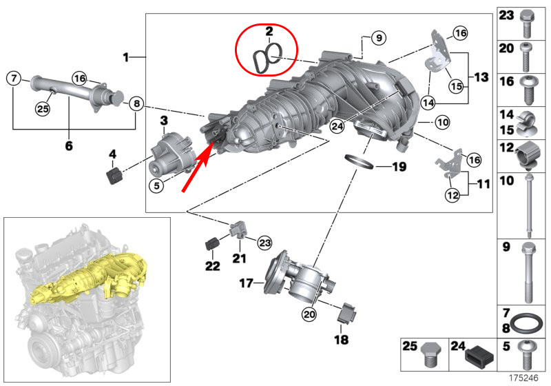 Zaślepka kolektora ssącego silnika BMW 2.0 D N47, N47S z O-ringami z Vitonu + uszczelki kolektora ssącego Victor Reinz