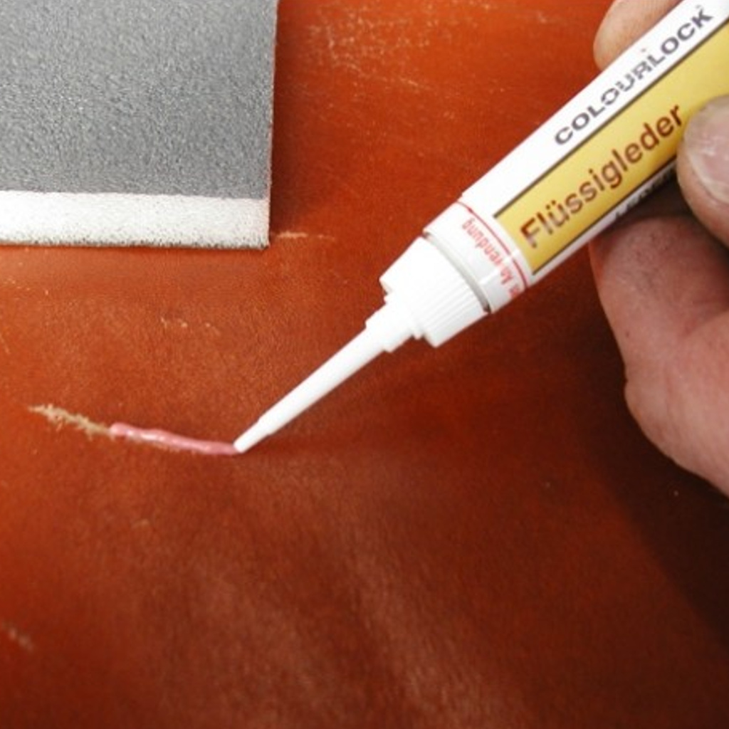 Płynną skórę najlepiej nakłada się przy pomocy małej szpachelki. Po jej wyschnięciu (około 2 godzin) w razie potrzeby należy nałożyć kolejną warstwę. Płynną skórę Colourlock po wyschnięciu można poddać obróbce poprzez szlifowanie na sucho (z wykorzystaniem pada szlifującego - allegro.pl/i6988505801.html) lub na mokro (wykorzystując rozpuszczalnik GLD - http://allegro.pl/i7099024714.html). Po ukształtowaniu regenerowanej powierzchni, w razie potrzeby należy dofarbować konserwowane miejsce farbą do skóry Colourlock (link do aukcji: allegro.pl/i6986724384.html).