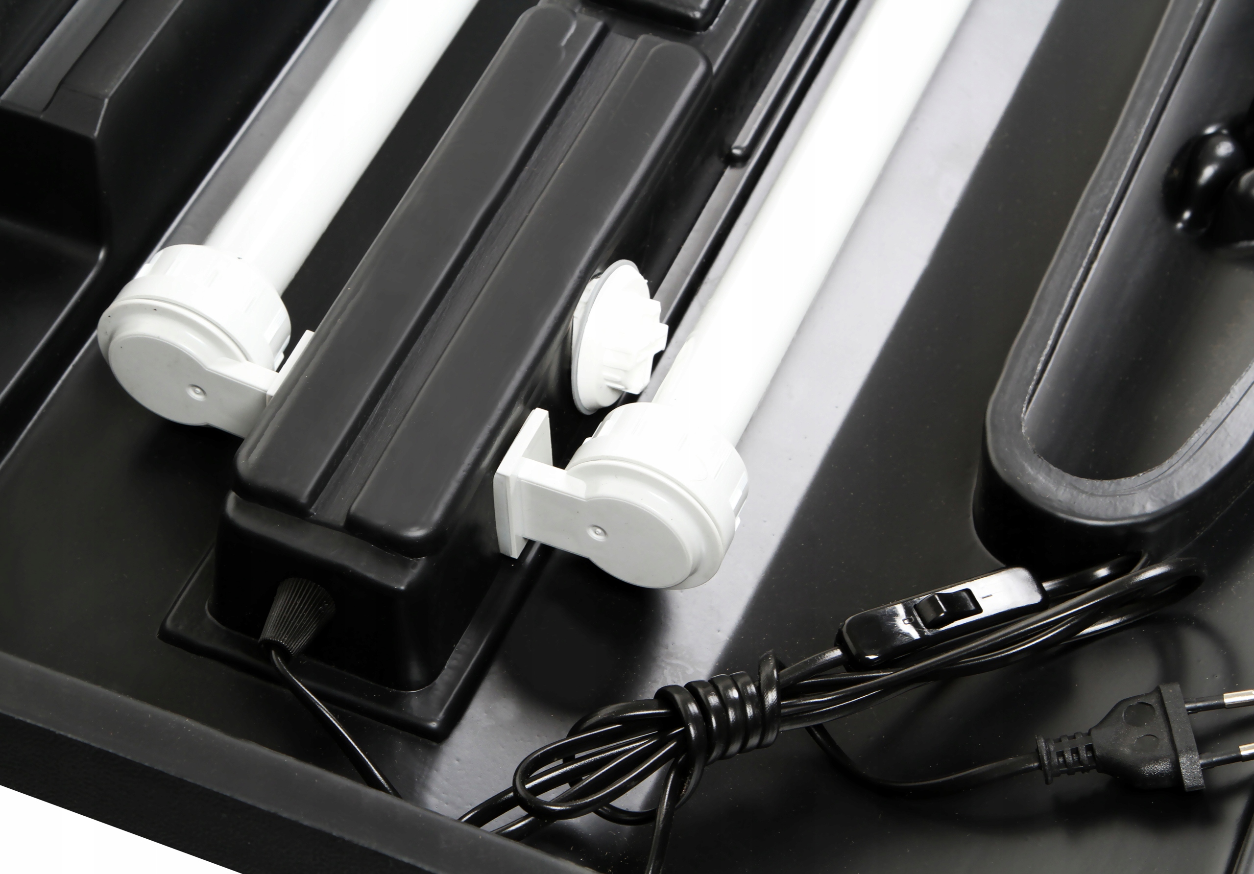 Pokrywa z oświetleniem 2x18W świetlówki w komplecie. Wszystko oryginalnie zapakowane przez producenta, nigdy nie używane. Pokrywa posiada wyjście na przewody, ułatwia to mocowanie urządzeń w środku akwarium. Możliwość podłączenia filtra zewnętrznego!