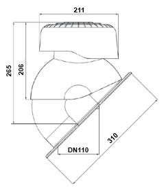 Kompletny wywietrznik kanalizacyjny z podstawą na istniejące pokrycie płaskie, na gont papę blachę. Średnica kanału wentylacyjnego 110 mm, wysoki 265 mm.