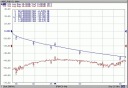 Charakterystyka częstotliwościowa kabla. Kolor niebieski - tłumienie kabla, kolor czerwony dopasowanie impedancyjne.