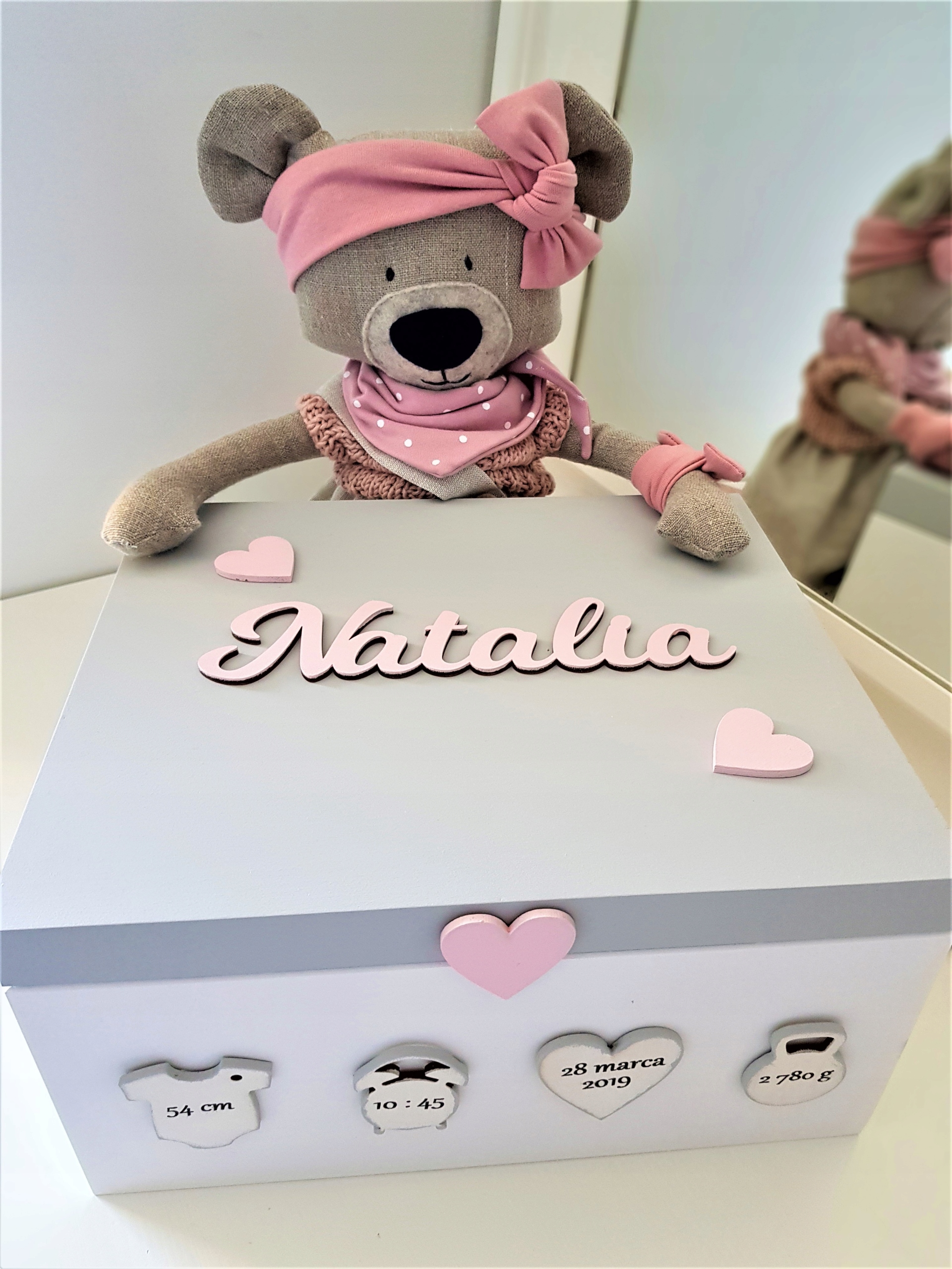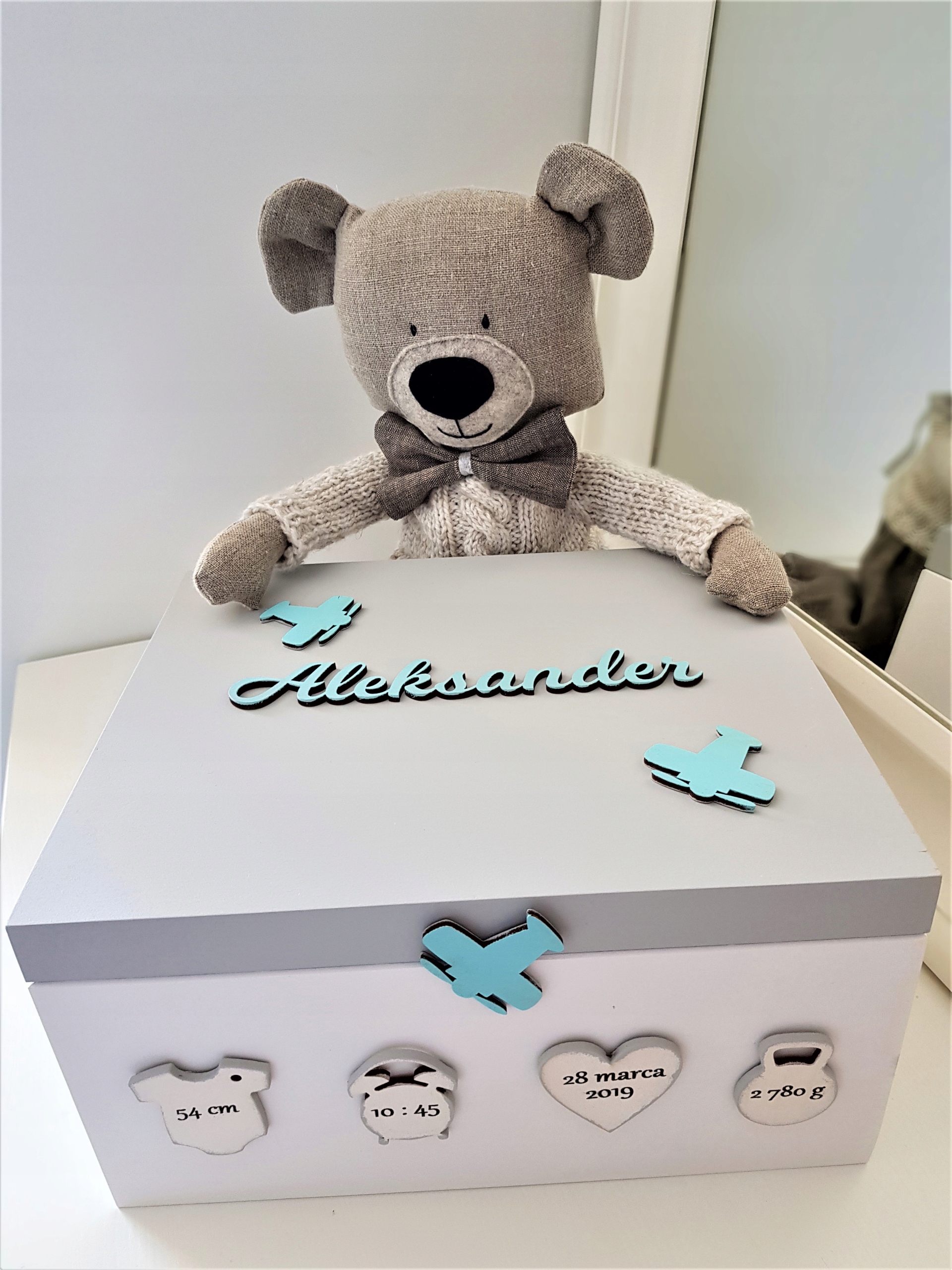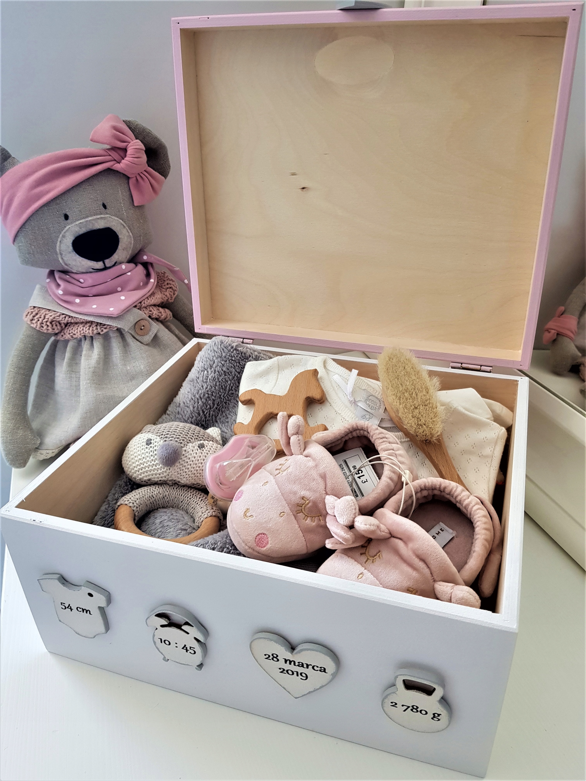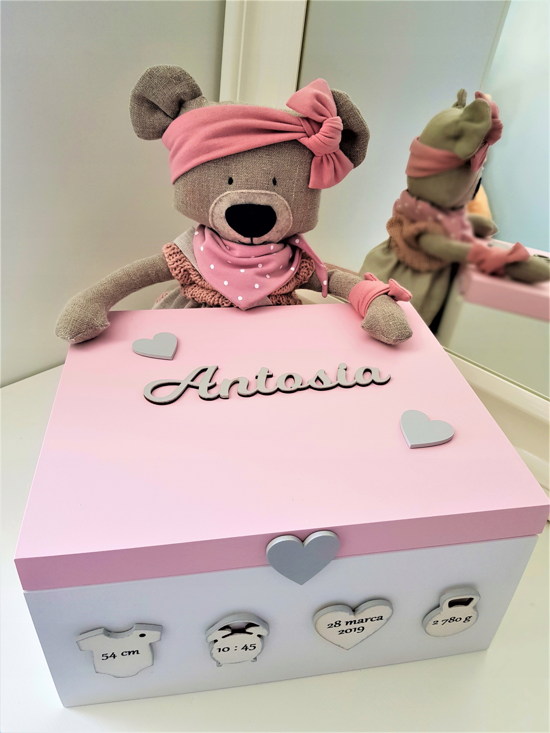 Drewniana skrzynia doskonale nadaje się na zabawki, skarby dla dziecka. Pudełko w całości wykonane ręcznie Hand Made. Skrzynia wykonana z niezwykłą starannością o detale. Doskonale nadaje się jako prezent na Chrzest, Roczek, Komunię lub urodziny.