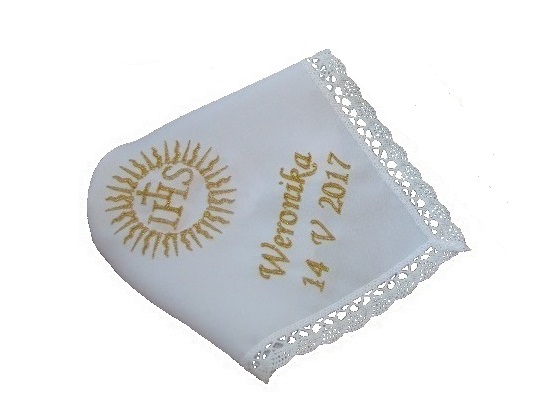 Он сшит из тонкого белого атласа или матовой белой полиэфирной ткани на ваш выбор и отделка кружевом