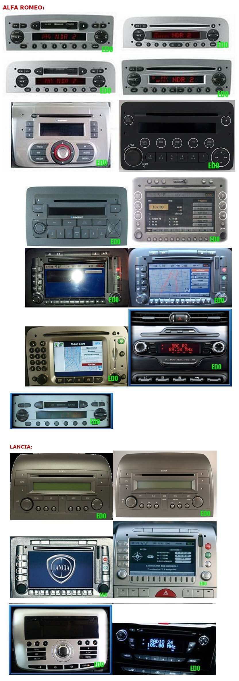 Wtyk Alfa Romeo/Fiat/Lancia pasuje do poniższych modeli: