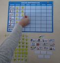 Nasza magnetyczna tablica motywacyjna wykonana jest w całości na folii magnetycznej, dodatkowo zabezpieczona laminatem przed zabrudzeniem. Elementy trzymają się na planszy nawet wtedy, gdy nie jest ona zaczepiona na tablicy magnetycznej.