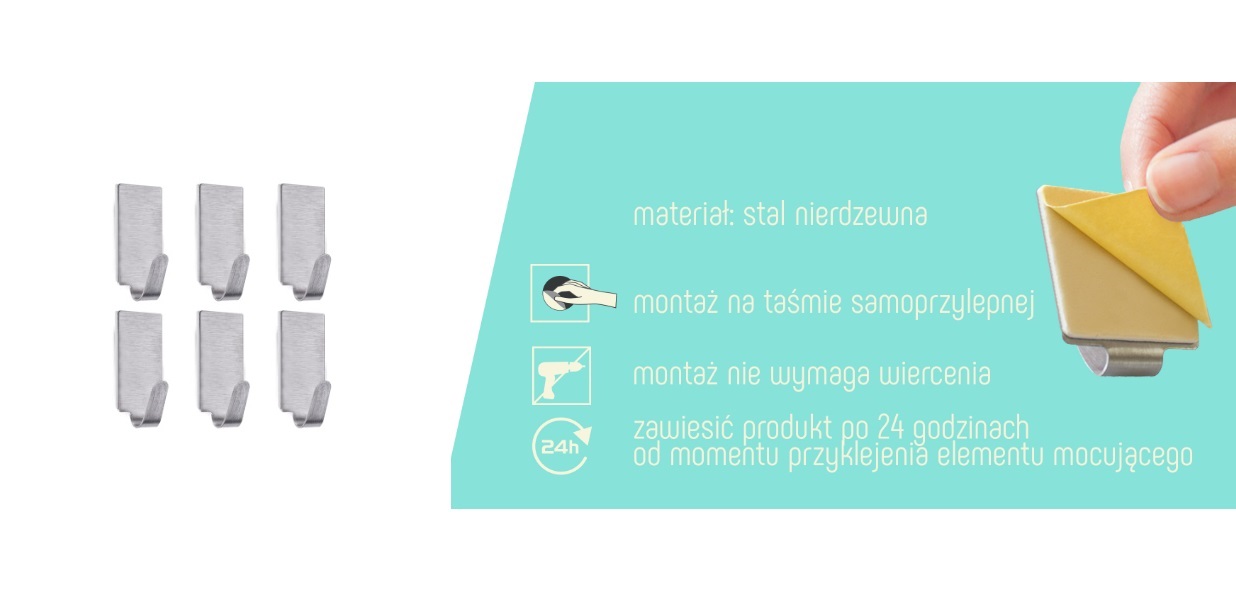 Sklep internetowy magiczna-lazienka proponuje Państwu samoprzylepne wieszaki na ręczniki, ścierki itp. (w zestawie 6szt.). Wieszaki wykonane ze stali, przeznaczone do powieszenia na każdej dającej się przykleić powierzchni za pomocą super taśmy (produkt dla osób które nie chcą wiercić w kafelkach lub ścianie).