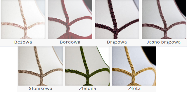 После покупки, пожалуйста, укажите информацию о выбранном цвете галантереи. Абажур в цвете экрю, у нас есть выбор pasmanterię: