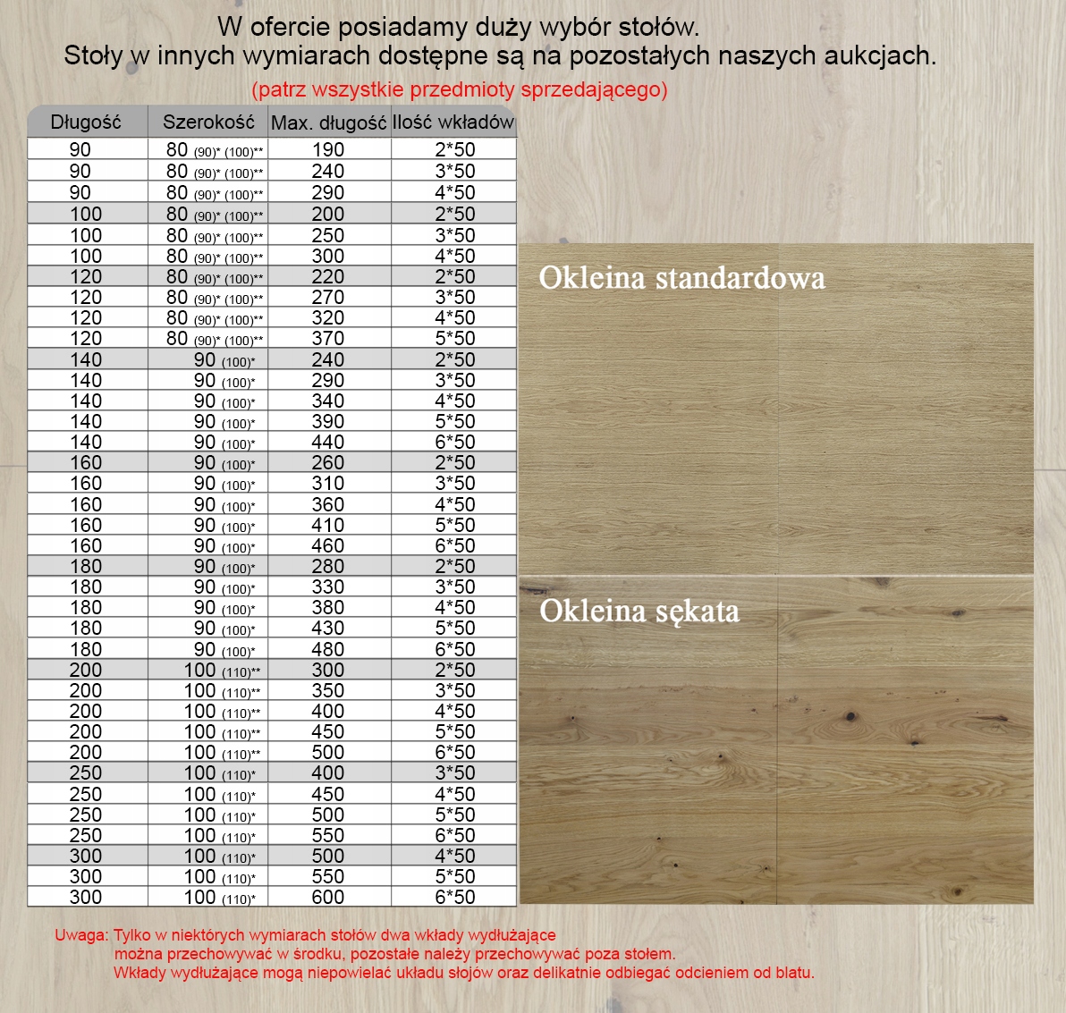 Столешница изготавливается из плиты MDF oklejonej двух сторон натуральным шпоном (дубовый или букова), клеем не emitującym канцерогенных соединений на водной основе. Поверхность столешницы стола покрыта dwuskładnikowymi chemoutwardzalnymi полиуретановыми лаками о: