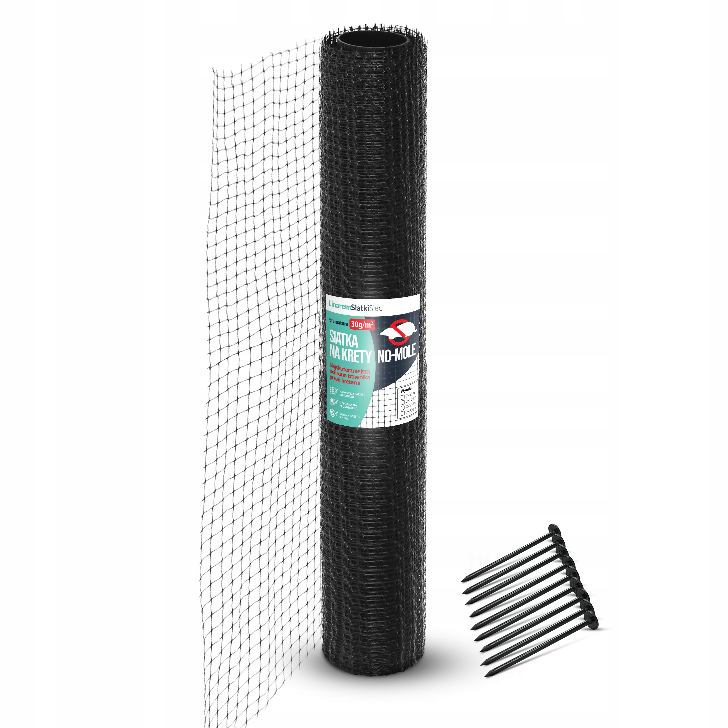 Siatka przeciw kretom wykonana jest z tworzywa sztucznego - polipropylenu, odpornego na czynniki zewnętrzne, wilgoć i promieniowanie UV.