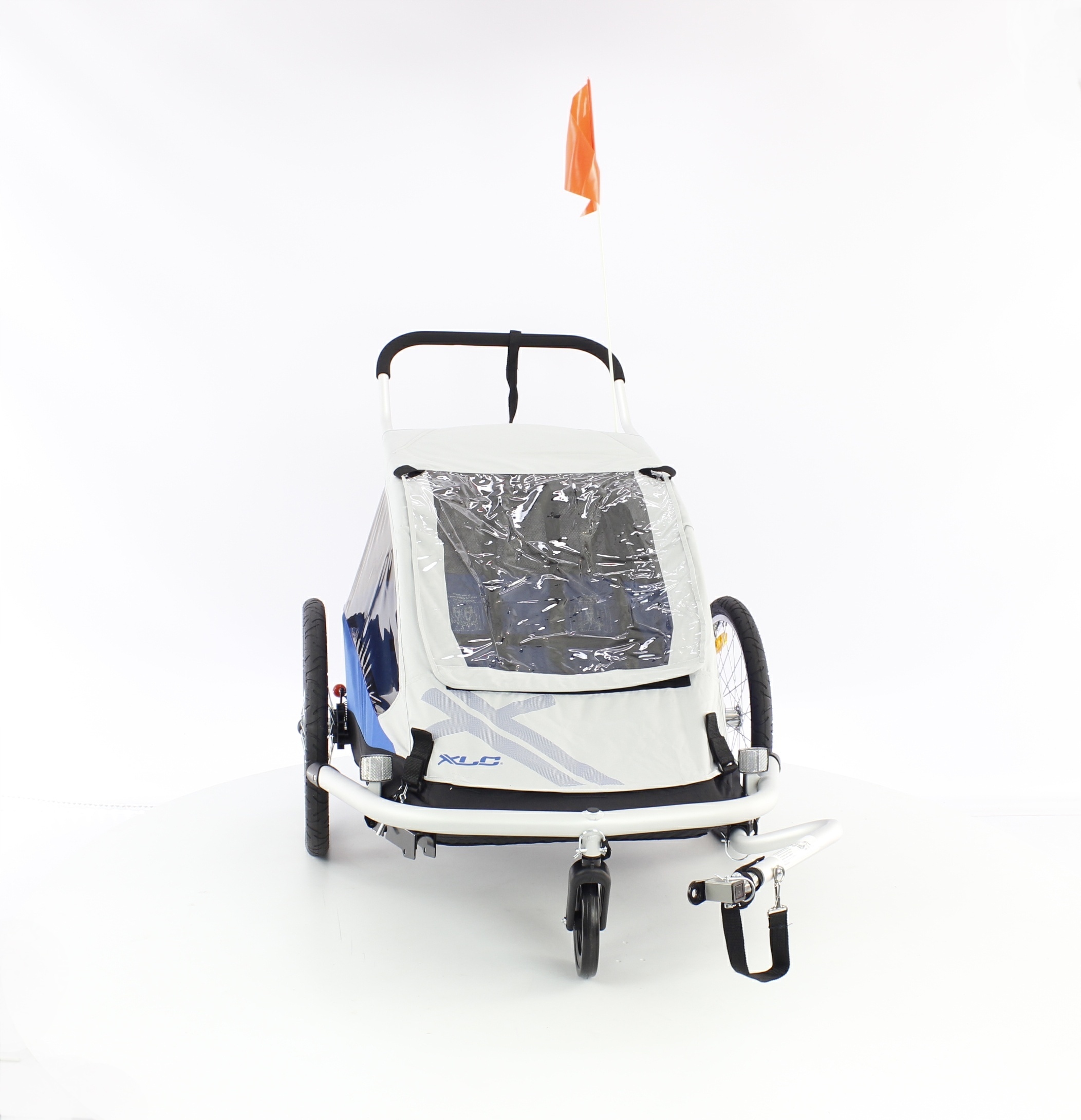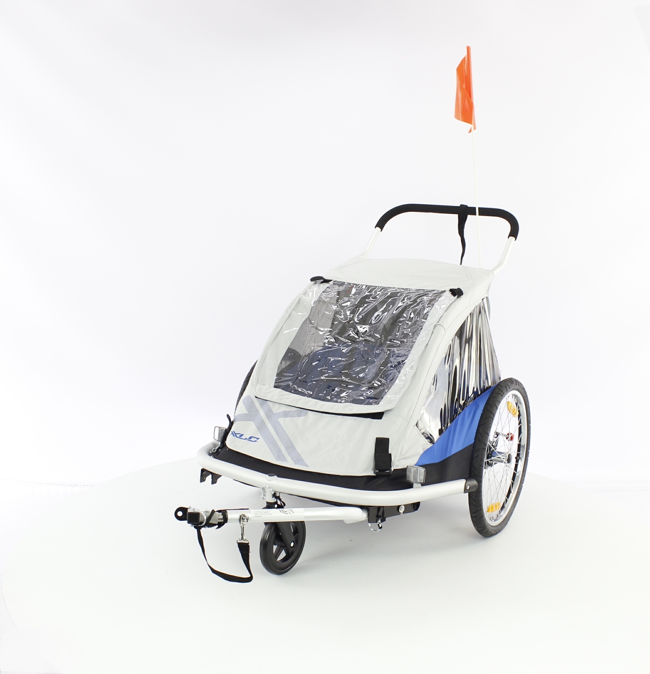 Легкий, удобный двухместный прицеп, оборудованный всеми удобствами и безопасность для детей.