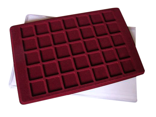 Paleta przygotowana do pomieszczenia 35 monet o nominale 10zł z kapslem. Rozmiar okienka 35mm x 35mm paleta fabrycznie nowa o wymiarach całkowitych 330x225mm posiadająca zasuwke z folii utwardzanej oraz zapakowana jest w woreczek strunowy.