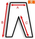 M/L ) Wymiar A /spodnie lużno leżące / - 39 cm. , wymiar A /po naciągnięciu / -47 cm. Wymiar B – 105 cm. Wymiar C – 76 cm.