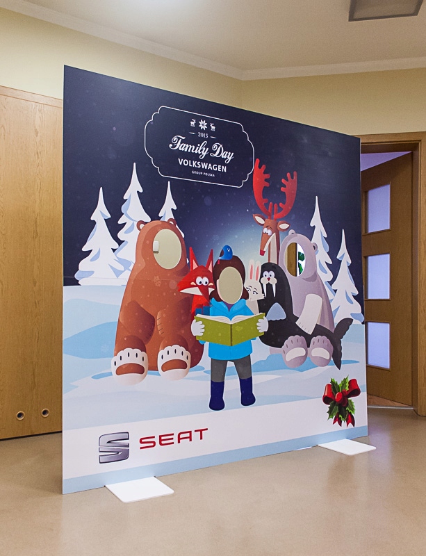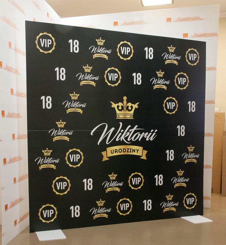 Kształt: prostokąt lub inny dowolny, w cenie jest też wycięcie dowolnej ilości otworów na twarz, jesli chcesz użyć ścianki jako fotostandu.