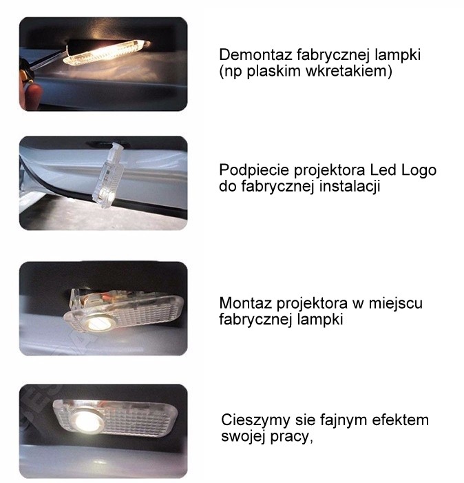 Lampki powitalne wyświetlają napis SLINE po otworzeniu drzwi. Super efekt